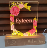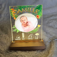 Impression d'une plaque plexi de 3mm avec un support bois lumineux et branchement usb avec interrupteur.